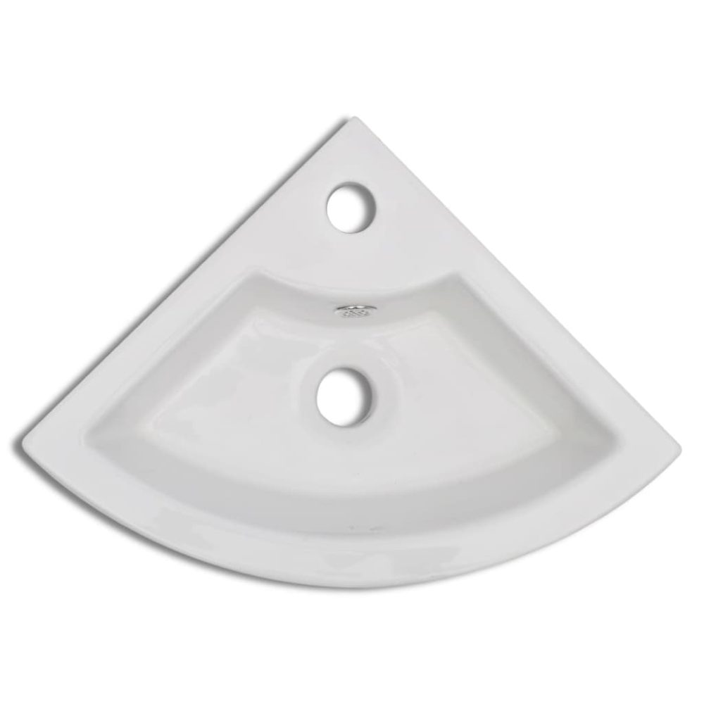 Feito de cerâmica, este lavatório de canto será um complemento chique e intemporal para qualquer casa de banho, vestiário ou toalete.