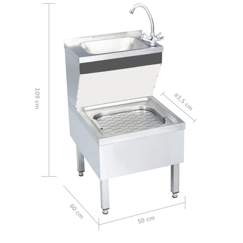Inclui ainda uma torneira de água quente e fria. Esta estação de lavagem manual independente com 2 lavatórios é fácil de montar.