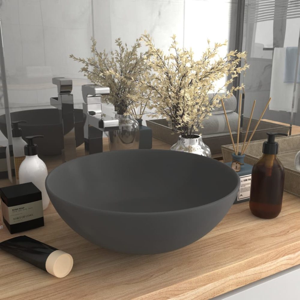 O nosso lavatório redondo para casa de banho adiciona um toque contemporâneo a qualquer decoração de casa de banho. Também é adequado para toilette, cozinha, garagem ou local de trabalho. Pode ser montado sobre a bancada ou colocado no topo do móvel da casa de banho.