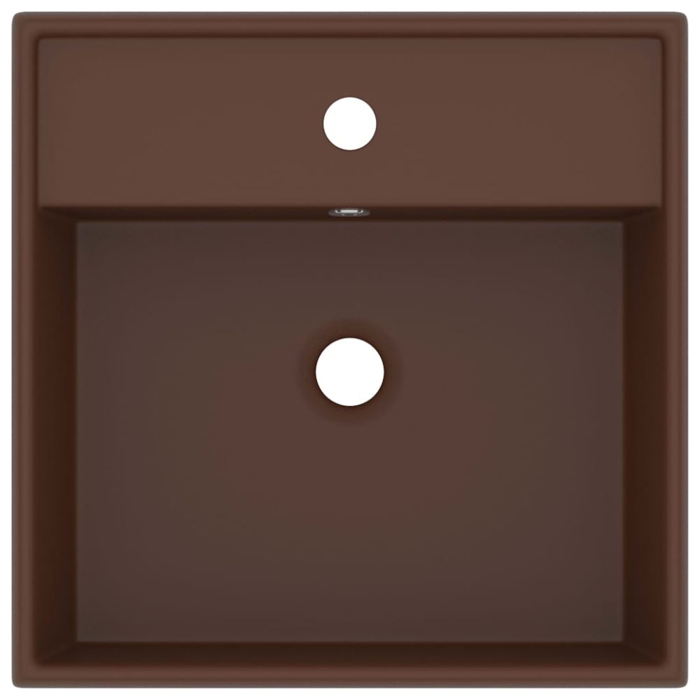 Lavatório luxuoso quadrado 41x41 cm cerâmica castanho mate - PORTES GRÁTIS