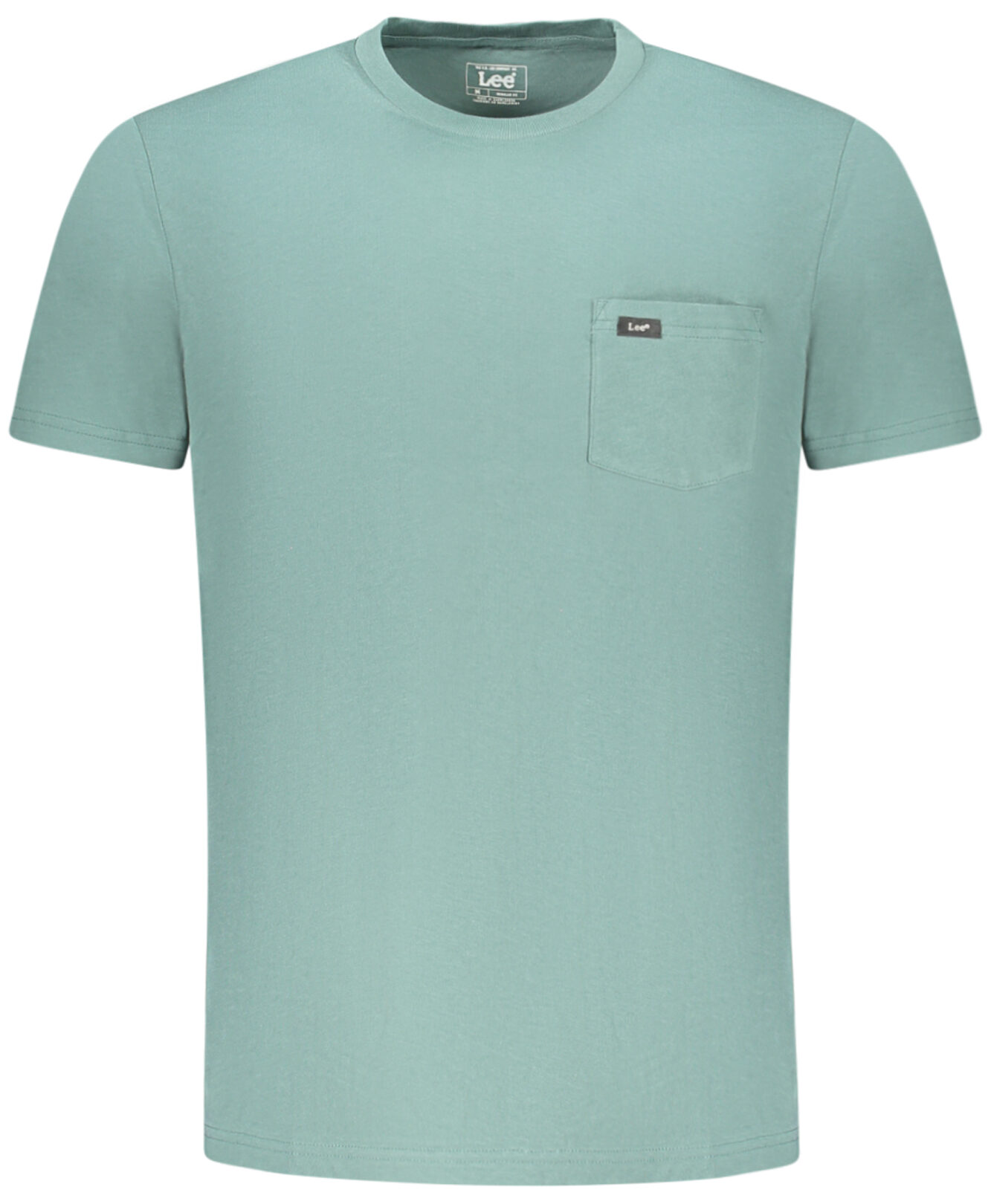 Camiseta de manga curta, camiseta com bolso, modelagem regular, gola redonda, 1 bolso, logo