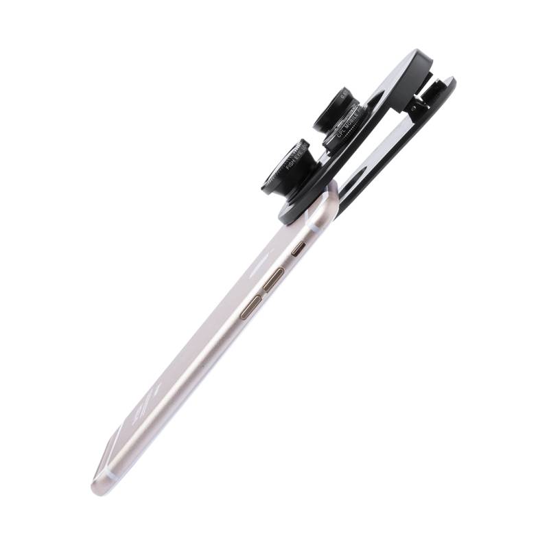 Sem necessidade de trocar lentes, oferece modos macro, CPL, olho de peixe e grande angular. Com braçadeira de segurança.
