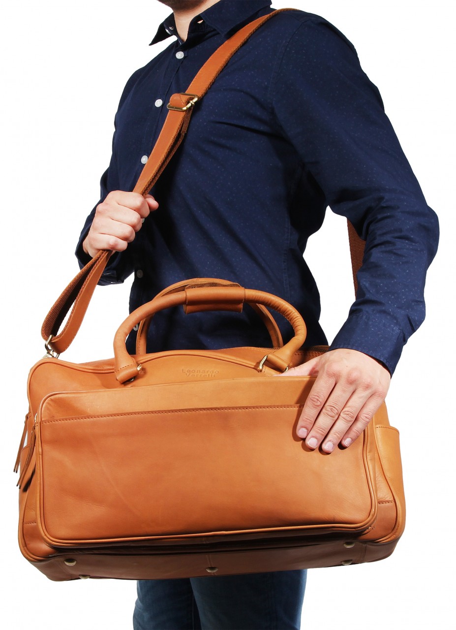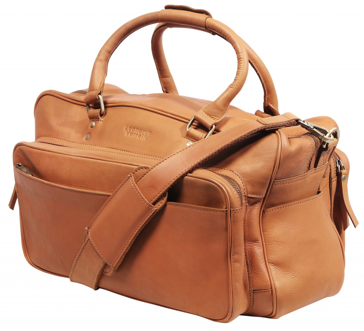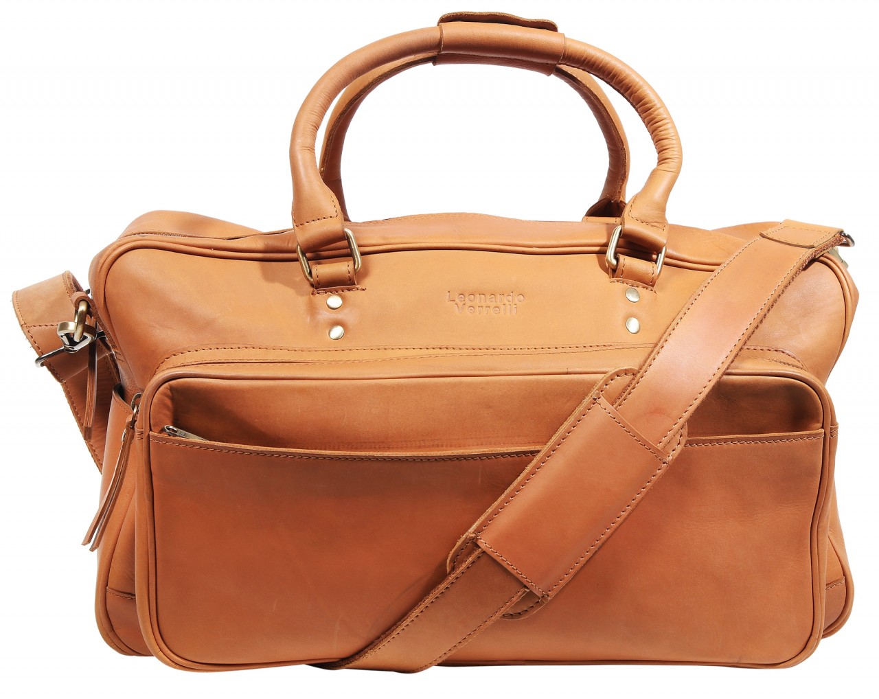 A bolsa de transporte da Leonardo Verrelli é feita de couro genuíno e tem um visual simples com design de linhas retas. A sensação do couro é particularmente macia e distinta. A bolsa de couro é uma companheira prática nas viagens ou nos momentos livres. O tamanho prático e o material de alta qualidade garantem um uso confortável. Graças à disposição clara e ao grande compartimento interior, o interior pode ser perfeitamente estruturado. O grande compartimento principal oferece muito espaço de armazenamento para qualquer item e também possui um grande bolso deslizante e outro grande bolso com zíper. Existem também dois grandes compartimentos com zíper na frente da bolsa. Num dos dois compartimentos com fecho há três presilhas para caneta, três compartimentos para cartões de crédito e um bolso estreito/compartimento para telemóvel.