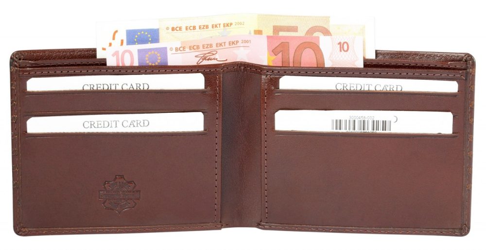 A carteira da marca Leonardo Verrelli foi confeccionada em formato paisagem em couro genuíno de búfalo e tem visual brilhante. A frente é realçada por leves relevos dispostos diagonalmente na bolsa. A costura externa e interna da carteira garante boa durabilidade e estabilidade. A carteira é um verdadeiro milagre de espaço e oferece muito espaço de armazenamento para todos os documentos importantes. Porém, tem um tamanho prático que cabe em qualquer bolso. A carteira está dividida em 6 compartimentos para cartões de crédito, 2 compartimentos para notas e 2 bolsos. O tamanho, sem preenchimento, tem 9,2 cm de comprimento, 11,4 cm de largura e 1,5 cm de espessura. A troca também possui proteção RFID. Este bloqueador é uma camada intermediária que está integrada no interior da carteira e garante que pessoas não autorizadas não possam acessar.