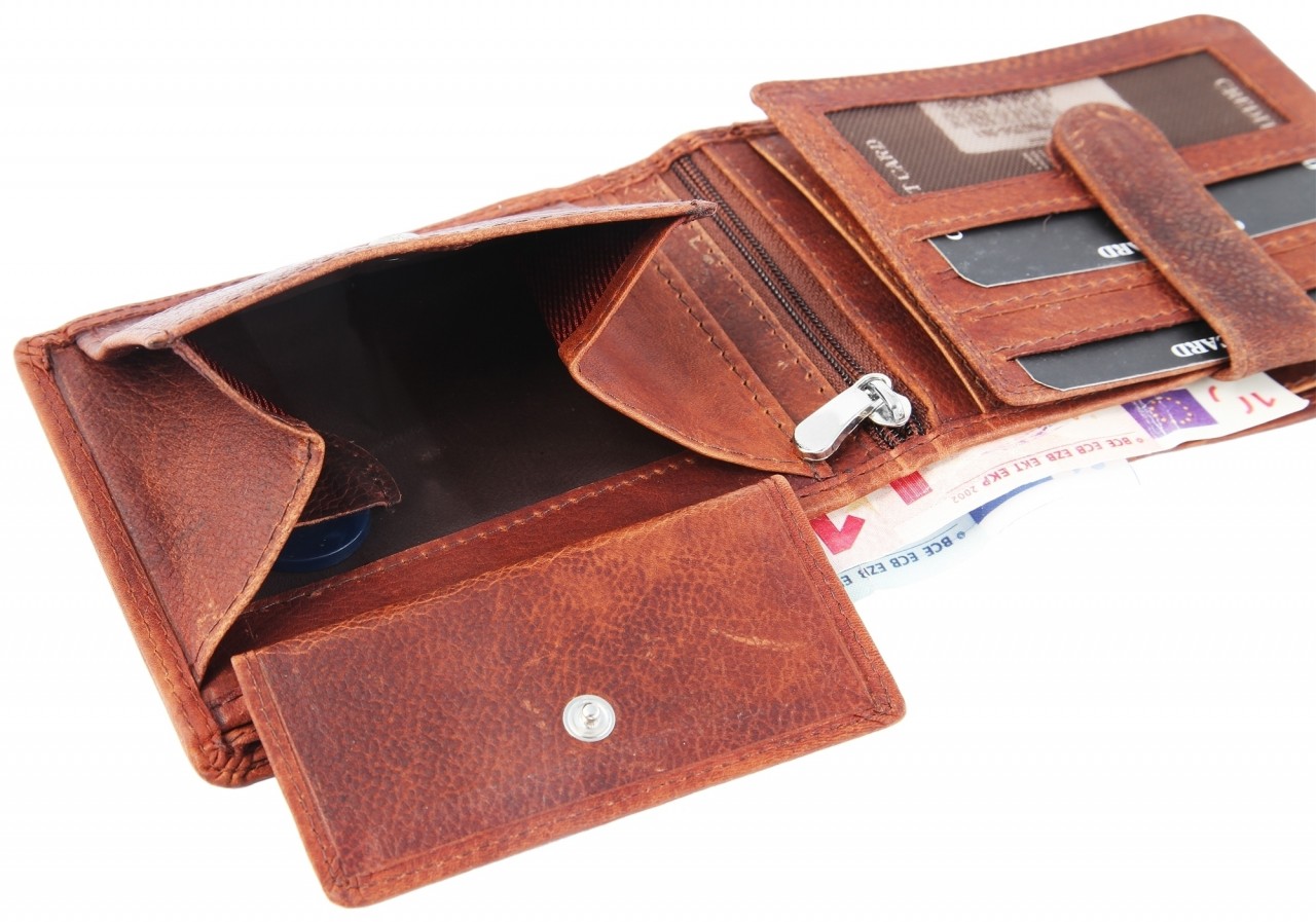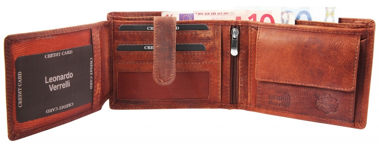 A carteira da marca Leonardo Verrelli foi confeccionada em formato paisagem em couro. A costura dupla na parte externa e interna da carteira garante boa durabilidade e estabilidade. A carteira é um verdadeiro milagre de espaço e oferece muito espaço de armazenamento para todos os documentos importantes. Porém, tem um tamanho prático que cabe em qualquer bolso. A carteira está dividida em 8 compartimentos para cartões de crédito, 2 compartimentos para notas, 1 compartimento para moedas com chip de compras, 1 compartimento com fecho na zona interior, 2 bolsos deslizantes e 1 compartimento transparente para identificação, que pode ser fechado com um prático fecho de pressão.