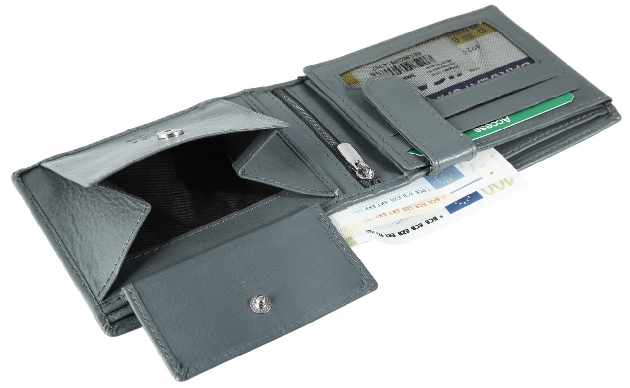 A carteira masculina em formato paisagem da marca Leonardo Verrelli é confeccionada em couro genuíno. A costura externa e interna da carteira garante boa durabilidade e estabilidade. A carteira está dividida em 6 compartimentos para cartões de crédito, 2 compartimentos para notas, 1 compartimento para moedas, 1 compartimento com fecho, 2 bolsos deslizantes e 1 compartimento transparente para identificação. Os cartões são adicionalmente presos por uma alça com fecho de pressão.