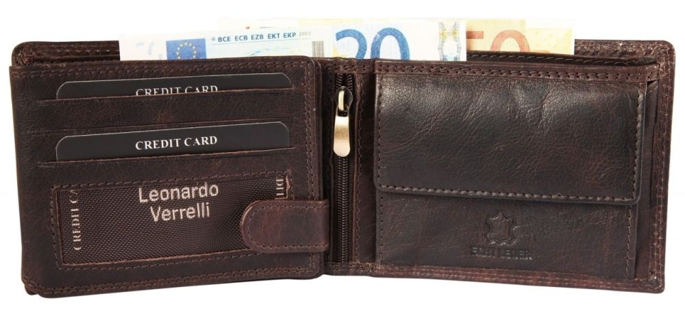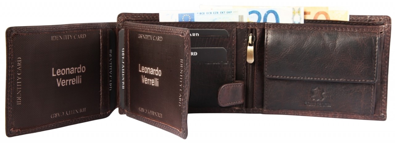 Carteira masculina Leonardo Verrelli feita de couro verdadeiro.