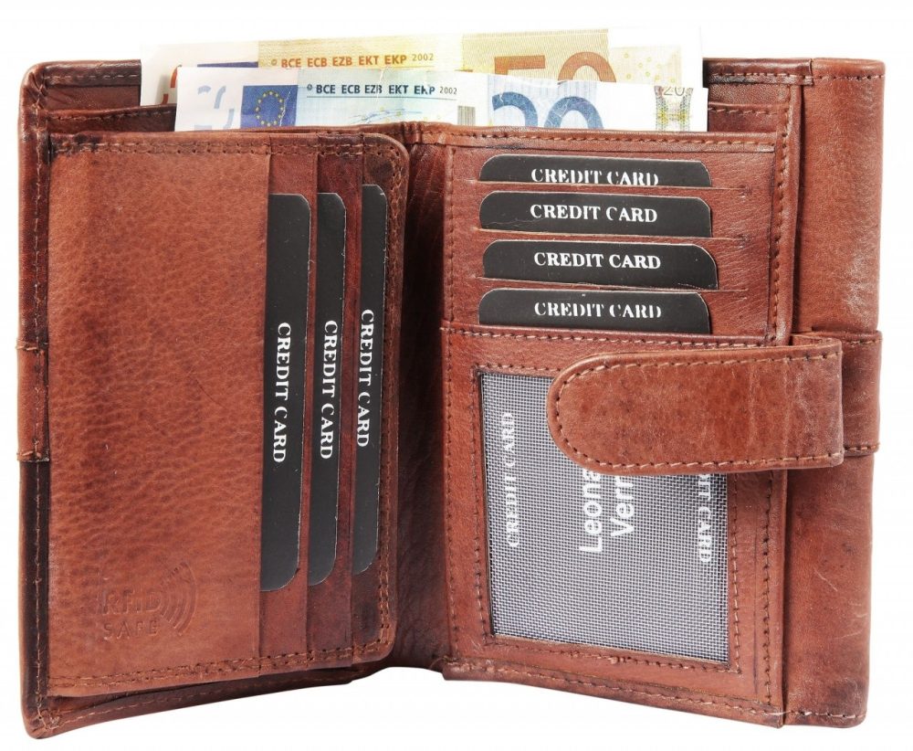 A carteira feminina da Leonardo Verrelli é feita de couro bovino genuíno e tem um visual vintage moderno. O forro interno é confeccionado em material sintético. A costura externa e interna da carteira garante boa durabilidade e estabilidade.A carteira está dividida em 11 compartimentos para cartões de crédito, 2 compartimentos para notas, 2 compartimentos para moedas com fichas de compras, 1 compartimento para moedas com fecho de correr, 2 bolsos deslizantes e 1 compartimento transparente para identificação. A carteira fecha com um prático fecho de pressão no exterior.