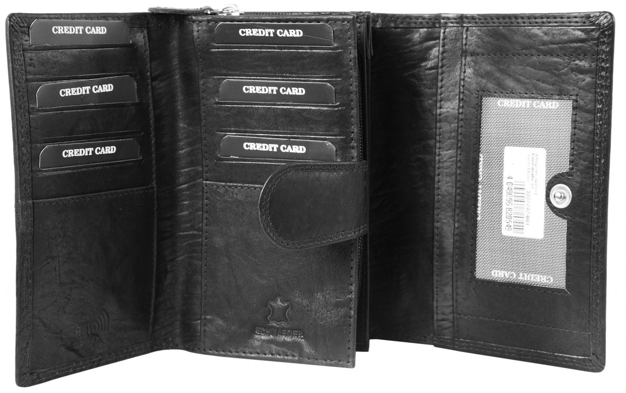 A carteira feminina em formato paisagem da marca Leonardo Verrelli é confeccionada em couro bovino genuíno. A costura dupla na parte externa e interna da carteira garante boa durabilidade e estabilidade. Está dividida em 13 compartimentos para cartões de crédito, 2 compartimentos para notas, 1 compartimento para moedas com fecho no interior, 4 bolsos deslizantes e 1 compartimento com fecho no interior e no exterior da carteira. A carteira fecha com um prático fecho de pressão no exterior.