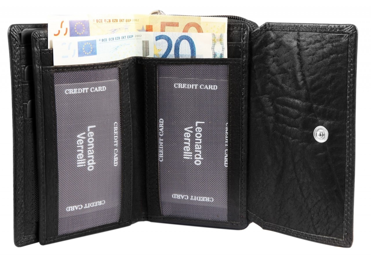 Leonardo Verrelli® Carteira Senhora em Couro Genuíno com Proteção RFID