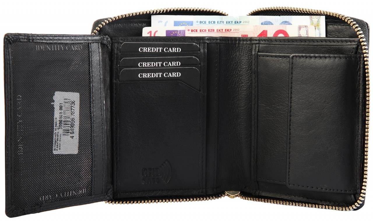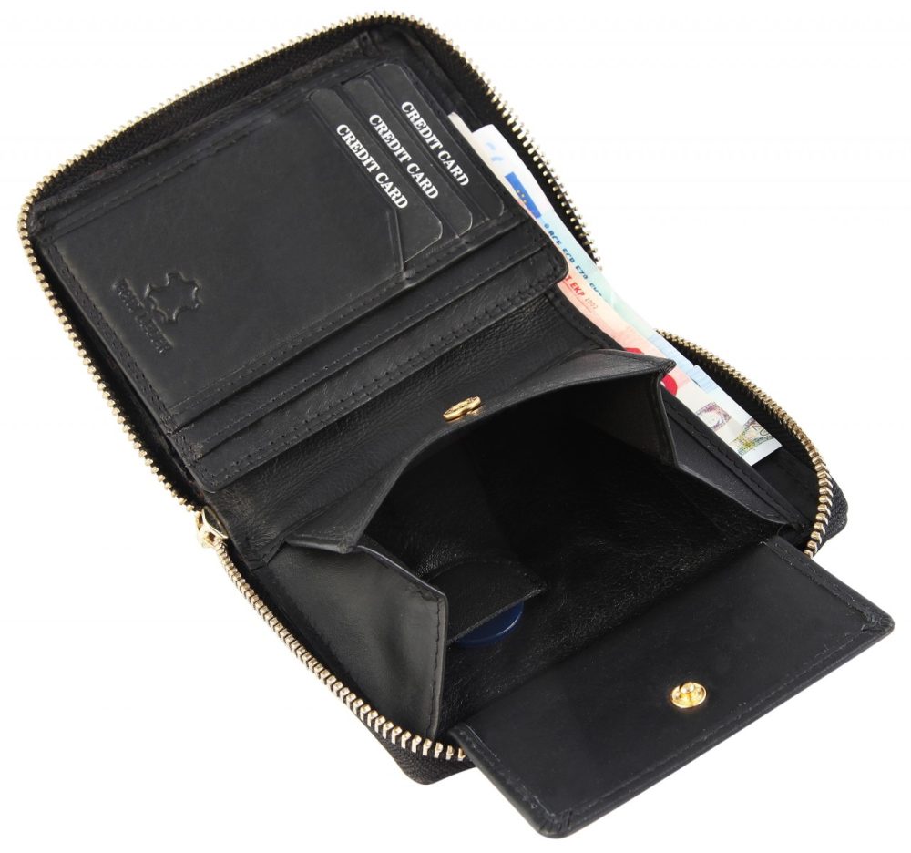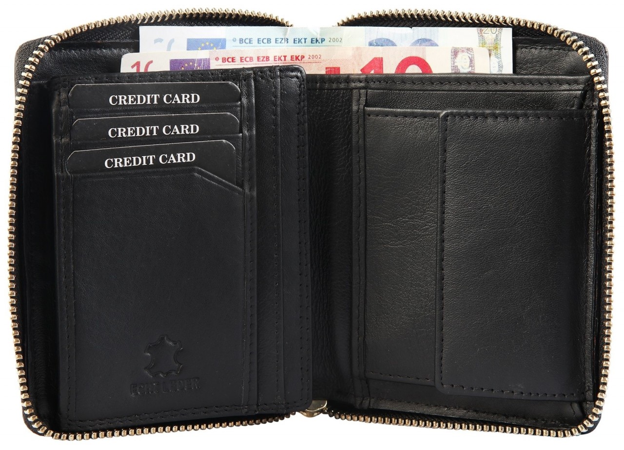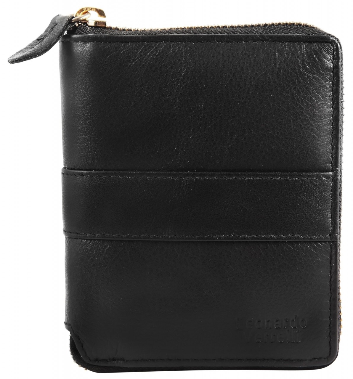 A carteira formato retrato da Leonardo Verrelli é feita de couro genuíno. Pode ser aberto e fechado com zíper. Quando aberto, há seis compartimentos para cartões, um bolso transparente para identificação, 7 bolsos deslizantes, um grande compartimento para notas e um bolso para moedas. A costura externa e interna da carteira garante boa durabilidade e estabilidade.