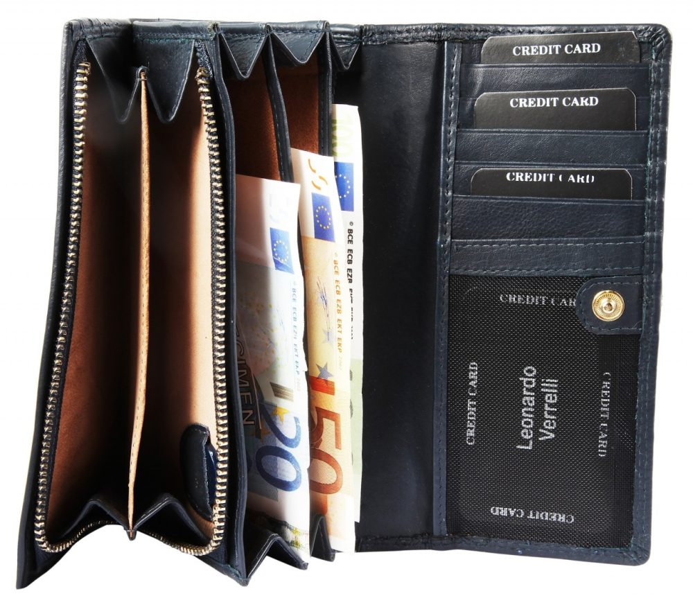Leonardo Verrelli® Carteira Senhora em Couro Genuíno com Proteção RFID