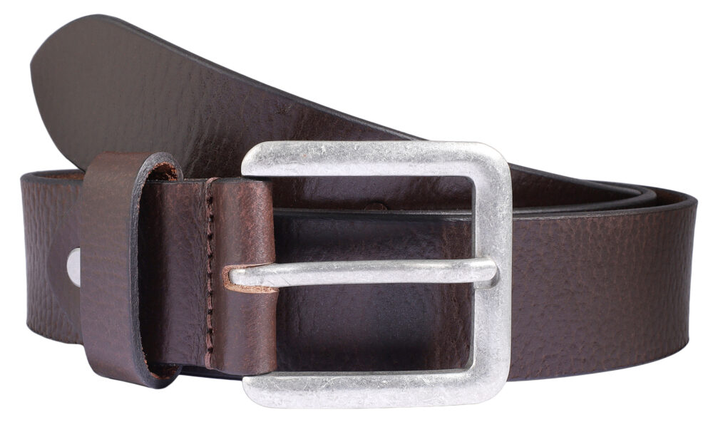 • Feito de couro legítimo em um tom marrom quente, o cinto apresenta grão natural. Com uma espessura robusta de 4 mm , o couro é particularmente durável.