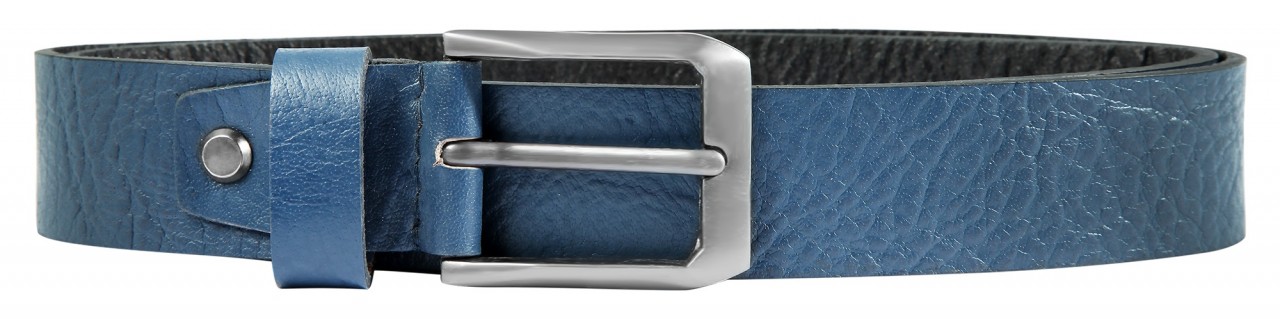 O cinto azul de Leonardo Verrelli é feito de couro genuíno e possui acabamento liso com granulação individual. Está disponível em diversos tamanhos de cintura, tem 3,4 cm de largura e 0,4 cm de espessura.