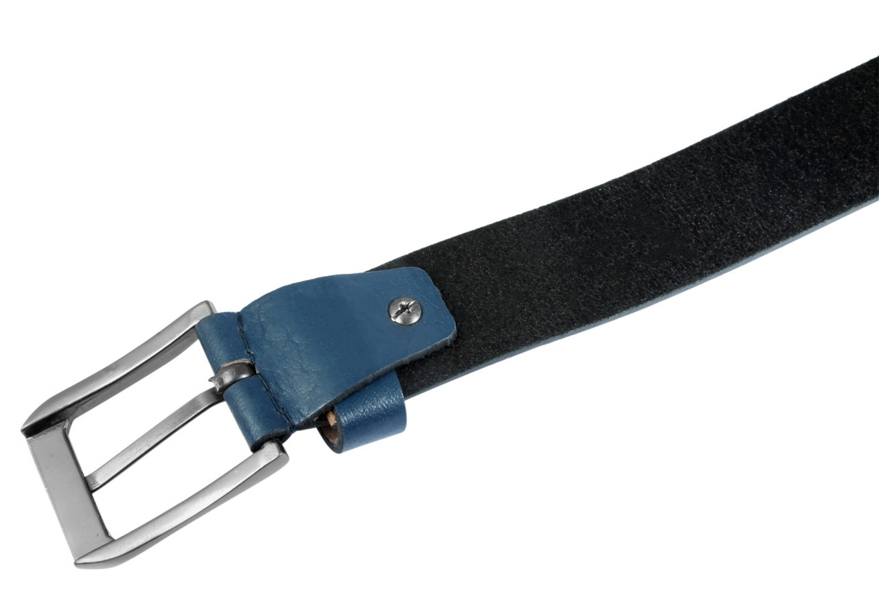 A fivela de metal é fixada com um parafuso, o que significa que o cinto pode ser facilmente encurtado e ajustado a qualquer tamanho de cintura.