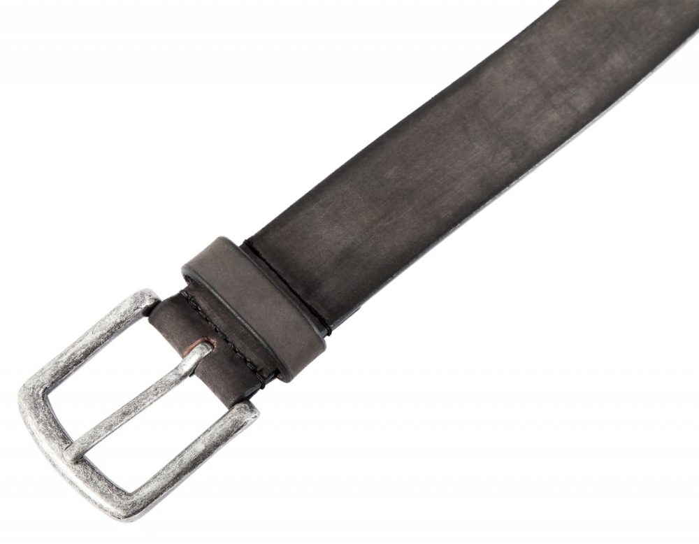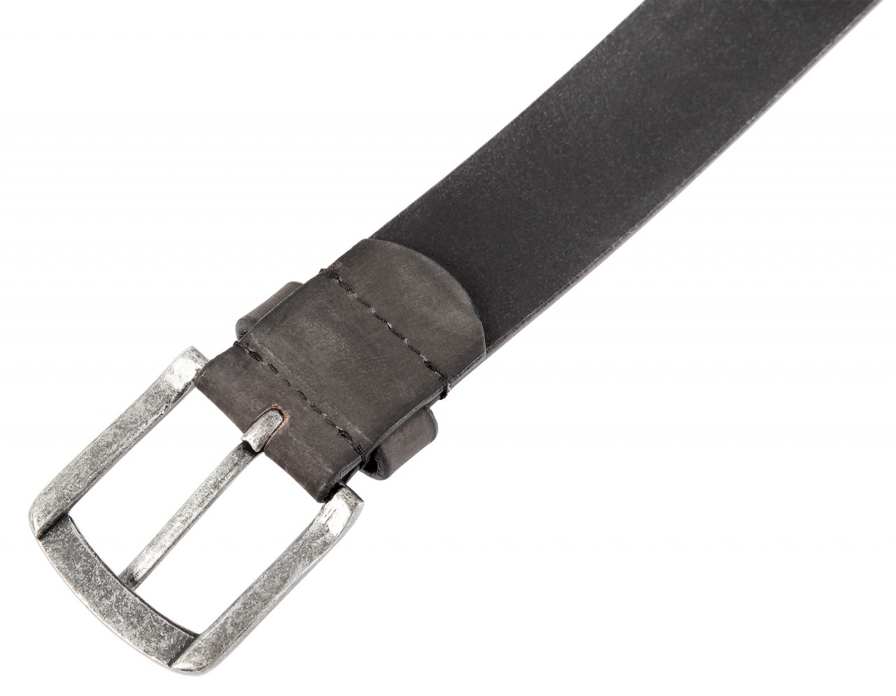 O cinto masculino cinza escuro da Leonardo Verrelli é feito de couro genuíno e tem superfície lisa e aveludada. O cinto tem 3,8 cm de largura e 4 mm de espessura. Está disponível em tamanhos de cintura de 90 cm a 140 cm. O cinto tem uma fivela de metal prateada costurada à mão com uma aparência usada. Os furos para o mandril estão espaçados de 2,5 cm. O cinto masculino é um lindo cinto de lazer que pode ser facilmente combinado.