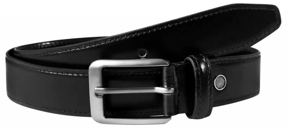 O cinto preto da Leonardo Verrelli é feito de couro genuíno e tem uma superfície lisa com um acabamento brilhante.