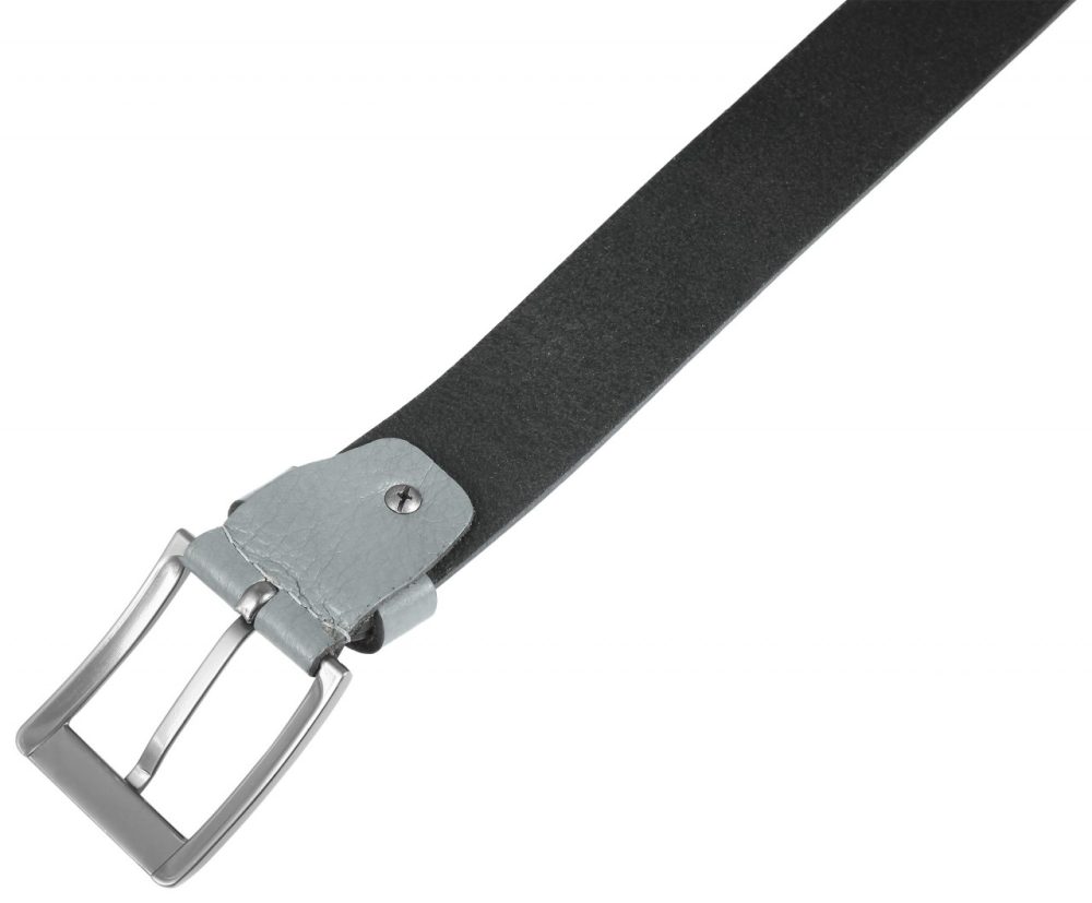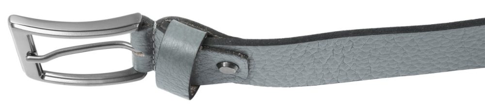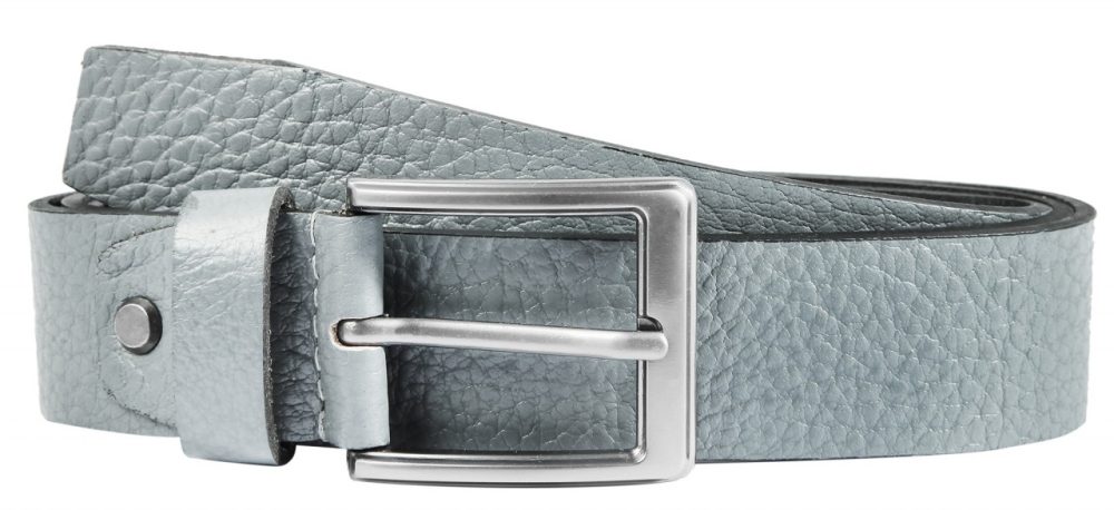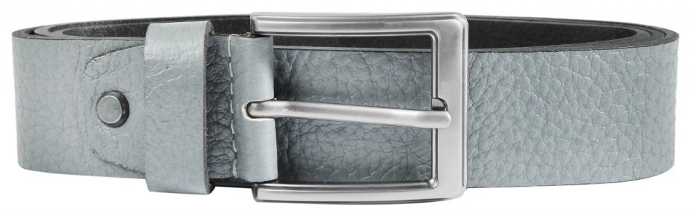 O cinto cinza da Leonardo Verrelli é feito de couro genuíno e tem uma superfície lisa com granulação.