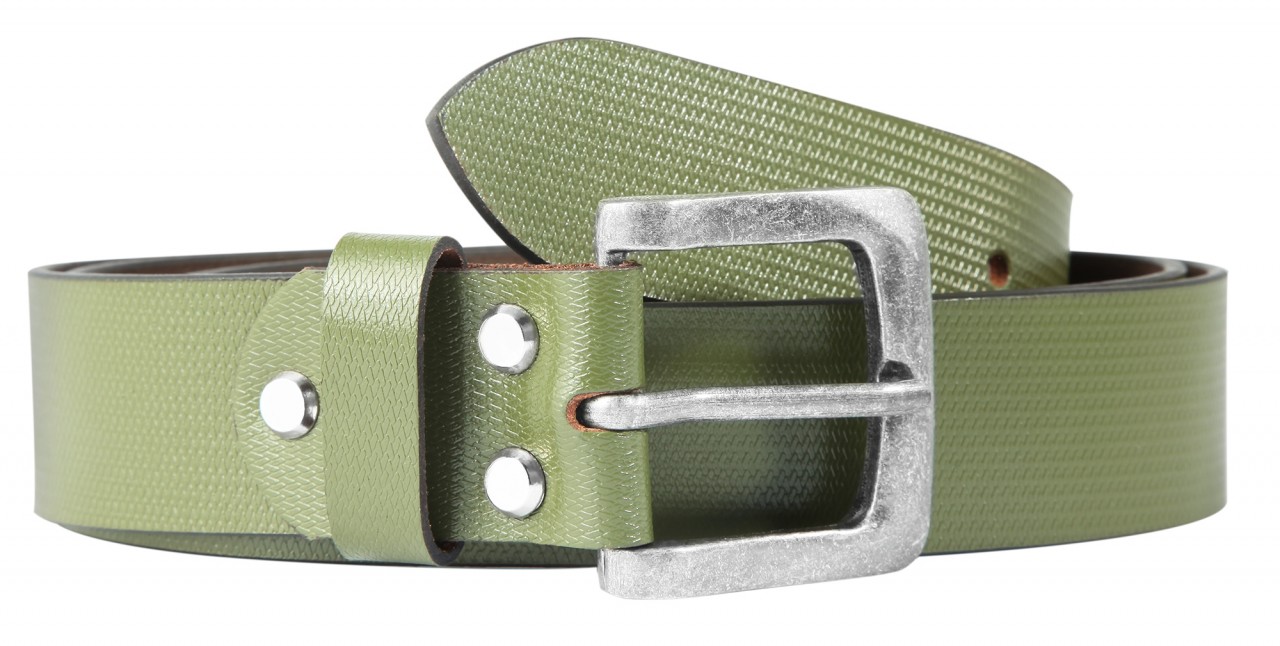 Este cinto verde escuro de Leonardo Verrelli é feito de pele de vaca e tem um acabamento liso com um padrão subtil em relevo. Está disponível em diferentes tamanhos de cintura, tem 3,8 cm de largura e 0,3 cm de espessura. Os orifícios estão espaçados de 2 cm. Isto torna o cinto de homem moderno versátil, uma vez que pode ser facilmente puxado através dos anéis de cinto convencionais. Graças ao material natural de alta qualidade, este cinto é particularmente robusto, duradouro e resistente a rasgões, o que faz dele o companheiro ideal para todas as ocasiões. A fivela de metal com pinos é fixada com parafusos, permitindo que o cinto seja facilmente encurtado e ajustado a qualquer tamanho de cintura. O tamanho do cinto é indicado na largura da cintura, que é 15 cm mais curta do que o comprimento total.