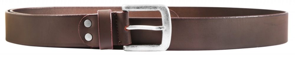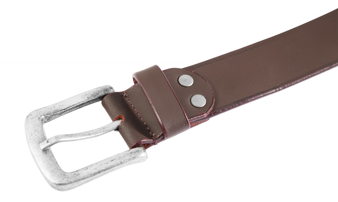 Tem 3,8 cm de largura e 0,3 mm de espessura. O cinto tem uma fivela de metal prateada costurada à mão.