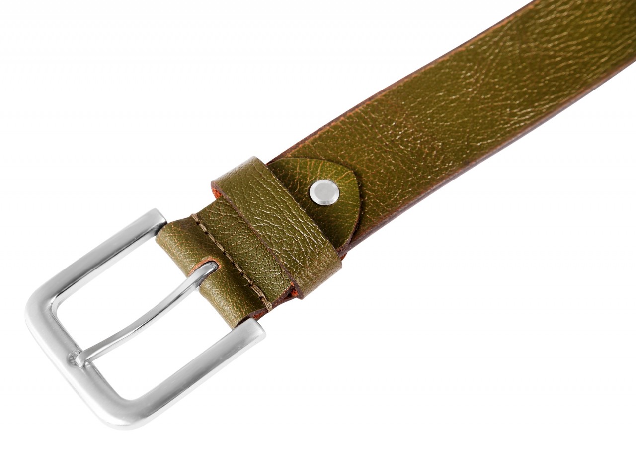 O cinto verde escuro da Leonardo Verrelli é feito de couro genuíno e tem uma superfície granulada.