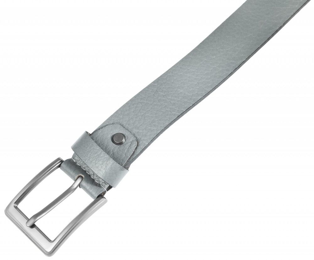 O cinto cinza da Leonardo Verrelli é feito de couro genuíno e tem uma superfície lisa com granulação.