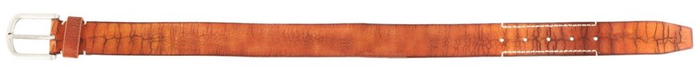 Tem 3,8 cm de largura e 0,4 mm de espessura. O cinto tem uma fivela de metal prateada costurada à mão.