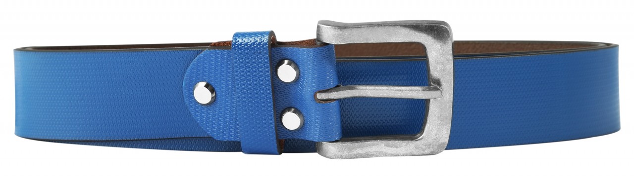A fivela de metal é fixada com parafusos, o que significa que o cinto pode ser facilmente encurtado e ajustado a qualquer tamanho de cintura.