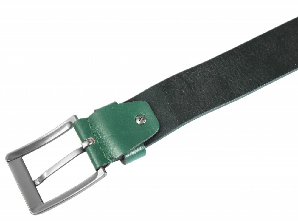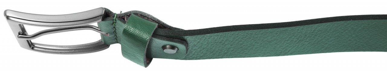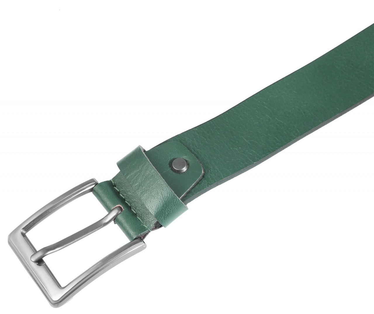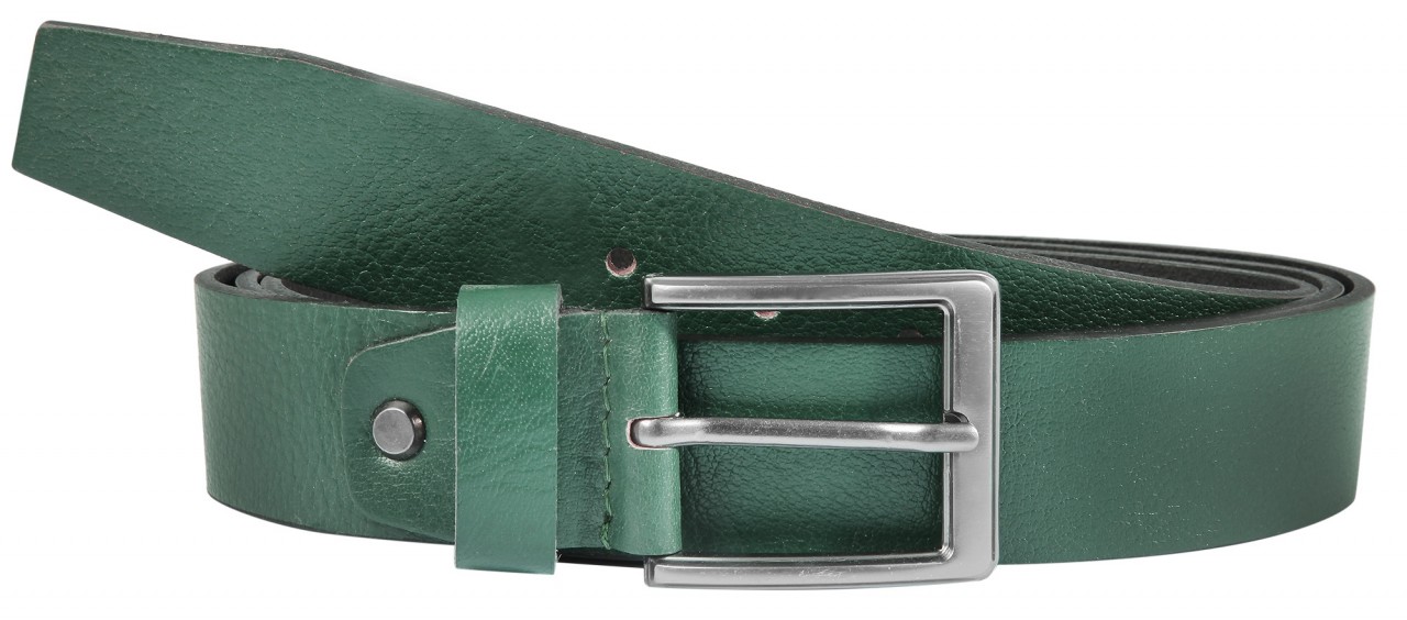O cinto verde da Leonardo Verrelli é feito de couro genuíno e tem uma superfície lisa com granulação.
