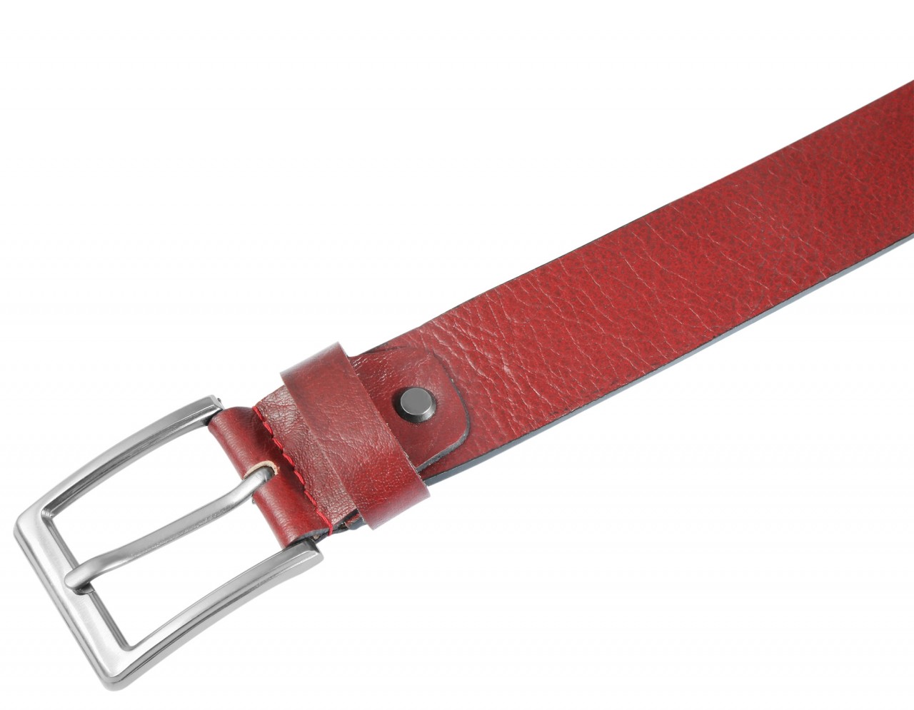 O cinto vermelho da Leonardo Verrelli é feito de couro genuíno e tem uma superfície lisa com granulação.