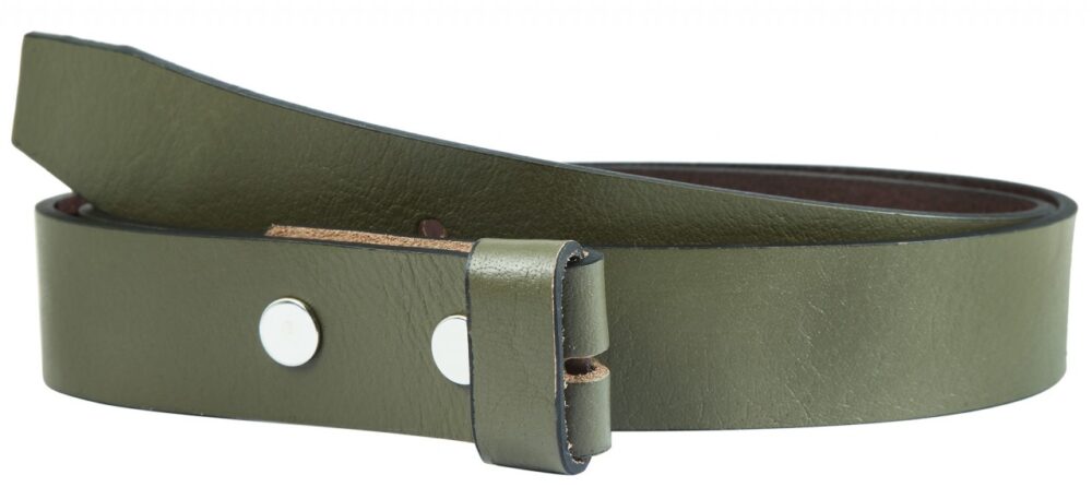O cinto verde oliva da marca Leonardo Verrelli é feito de couro genuíno e tem acabamento liso com granulação individual. Está disponível em diversos tamanhos de cintura, tem 3,5 cm de largura e 0,4 cm de espessura. Isso significa que o cinto feminino moderno pode ser usado de várias maneiras porque pode ser facilmente puxado pelas presilhas convencionais. Os furos estão espaçados de 2 em 2 cm. Uma particularidade é que o cinto não possui fivela, pois oferece a opção de diversas fivelas intercambiáveis. Estes podem ser alterados rapidamente e sem muito esforço usando dois botões. Esta opção torna este cinto um ótimo cinto casual com looks individuais. Devido ao material de alta qualidade, é muito robusto, durável e resistente a rasgos.