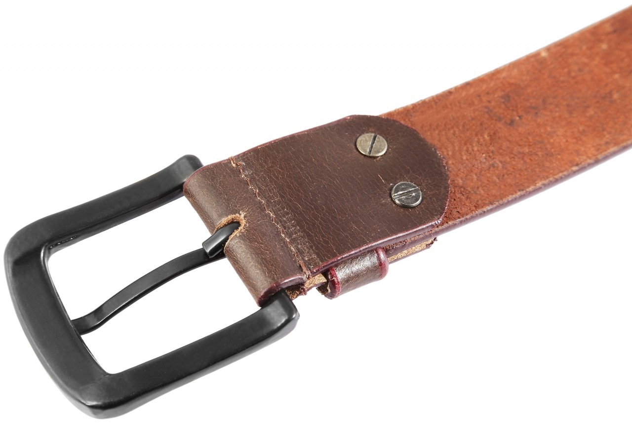 O cinto masculino de couro genuíno marrom escuro da Leonardo Verrelli é feito de couro de búfalo e tem uma superfície lisa. As bordas suavizadas garantem um ajuste confortável e completam habilmente a aparência do cinto moderno. O cinto está disponível nos tamanhos de cintura de 80 a 150 cm, tem 3,8 cm de largura e 0,4 cm de altura. Possui também uma fivela preta feita de metal e costurada à mão. Os furos para o pino do fecho estão espaçados de 2,0 cm. Uma característica especial é que o cinto pode ser encurtado para qualquer comprimento. Para fazer isso, dois parafusos abaixo da fivela do pino devem ser afrouxados com uma chave de fenda e o comprimento ajustado conforme desejado. O couro robusto torna este cinto particularmente resistente e, portanto, um companheiro fiel que pode ser usado em inúmeras ocasiões.