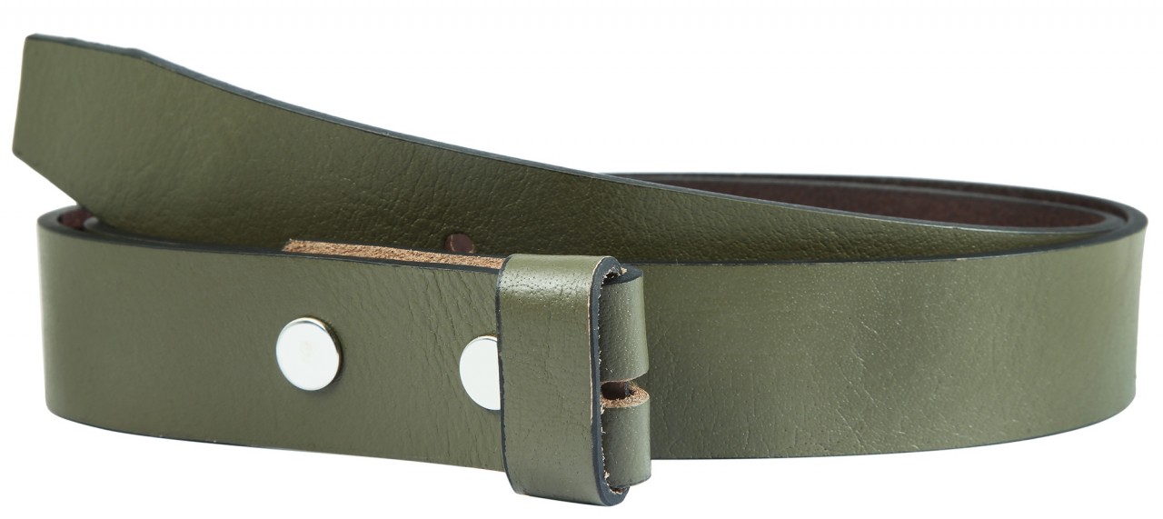 O cinto verde oliva da marca Leonardo Verrelli é feito de couro genuíno e tem acabamento liso com granulação individual. Está disponível em diversos tamanhos de cintura, tem 3,5 cm de largura e 0,4 cm de espessura. Isso significa que o cinto feminino moderno pode ser usado de várias maneiras porque pode ser facilmente puxado pelas presilhas convencionais. Os furos estão espaçados de 2 em 2 cm. Uma particularidade é que o cinto não possui fivela, pois oferece a opção de diversas fivelas intercambiáveis. Estes podem ser alterados rapidamente e sem muito esforço usando dois botões. Esta opção torna este cinto um ótimo cinto casual com looks individuais. Devido ao material de alta qualidade, é muito robusto, durável e resistente a rasgos.