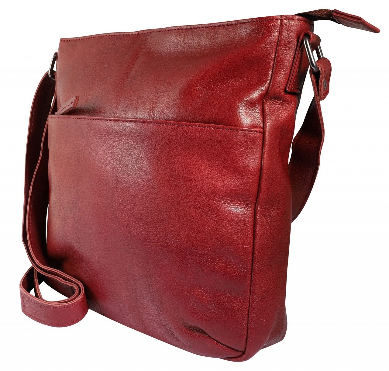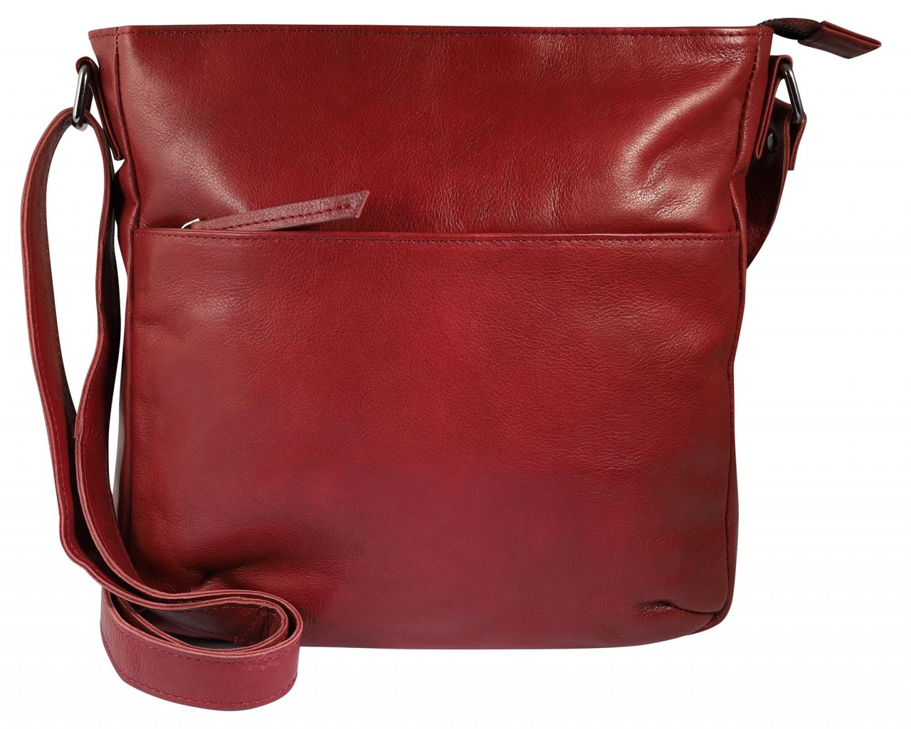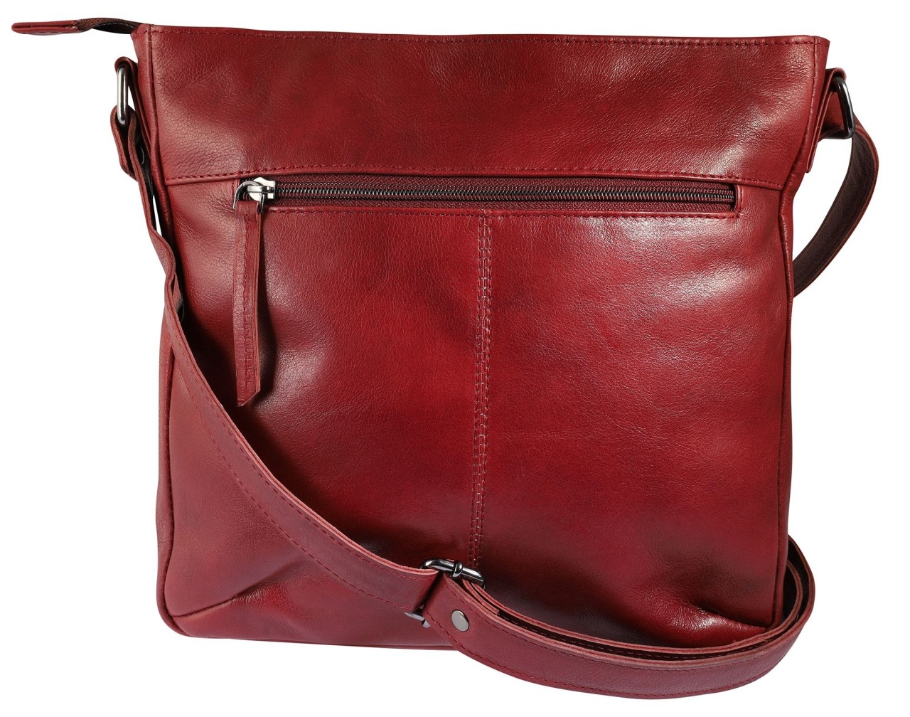 Bolsa de ombro feita de couro legítimo (couro bovino, lavado vintage), para mulheres Esta bolsa de ombro clássica feita de couro bovino lavado vintage de alta qualidade impressiona pela sua funcionalidade e design simples. A bolsa é ideal para o uso diário e oferece um layout interno bem pensado, bem como compartimentos externos práticos. Detalhes do produto: Material externo: 100% couro bovino genuíno (lavado vintage) Material interno: 100% poliéster Cores: preto, marrom, marrom claro, vermelho, azul, verde, rosa (acabamento vintage) Dimensões: aprox. 28 cm (comprimento) × 28 cm (largura) × 6,5 cm (profundidade) Tipo de fecho: zíper Características externas: 2 compartimentos grandes com zíper (frente e verso) Características internas (compartimento principal com zíper): 1 bolso para celular 1 bolso pequeno 1 bolso com zíper Outras características desta bolsa de ombro simples incluem uma alça de ombro ajustável e acabamento extremamente robusto.