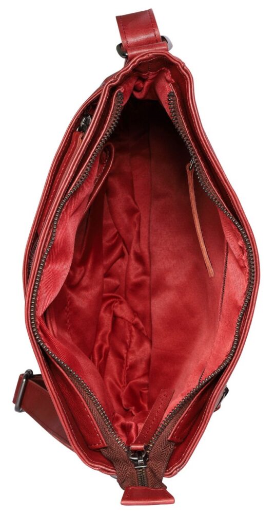 Bolsa de ombro feita de couro legítimo (couro bovino, lavado vintage), para mulheres Esta bolsa de ombro clássica feita de couro bovino lavado vintage de alta qualidade impressiona pela sua funcionalidade e design simples. A bolsa é ideal para o uso diário e oferece um layout interno bem pensado, bem como compartimentos externos práticos. Detalhes do produto: Material externo: 100% couro bovino genuíno (lavado vintage) Material interno: 100% poliéster Cores: preto, marrom, marrom claro, vermelho, azul, verde, rosa (acabamento vintage) Dimensões: aprox. 28 cm (comprimento) × 28 cm (largura) × 6,5 cm (profundidade) Tipo de fecho: zíper Características externas: 2 compartimentos grandes com zíper (frente e verso) Características internas (compartimento principal com zíper): 1 bolso para celular 1 bolso pequeno 1 bolso com zíper Outras características desta bolsa de ombro simples incluem uma alça de ombro ajustável e acabamento extremamente robusto.