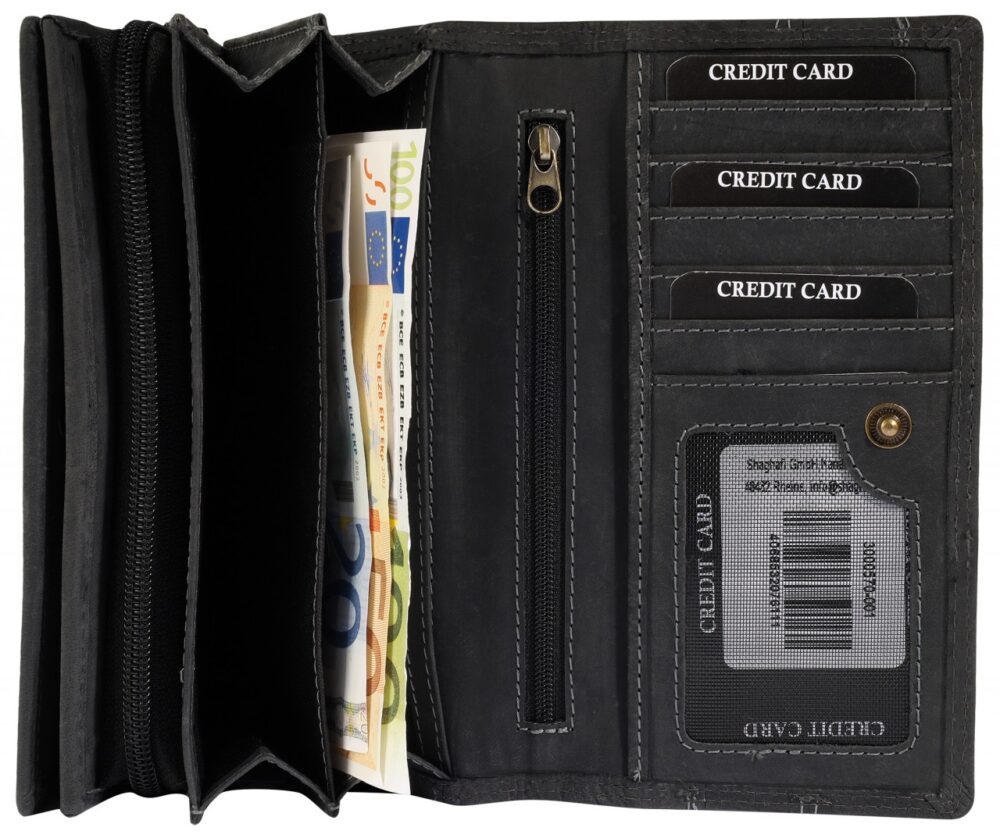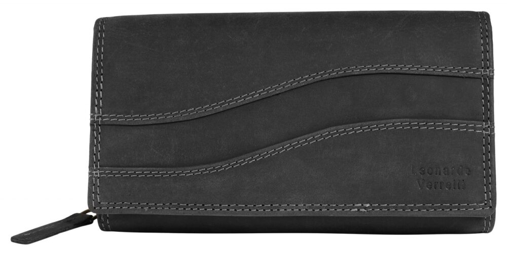 Descubra a carteira elegante e prática de Leonardo Verrelli. Fabricada em pele genuína de alta qualidade com um apelativo acabamento vintage, esta carteira alongada impressiona pelo seu design sofisticado e funcionalidade. A costura decorativa na frente chama particularmente a atenção, conferindo à carteira um carácter elegante e individual. Com 17,5 x 10 x 4 cm, esta carteira oferece um espaço de arrumação ideal e uma organização clara: 2 compartimentos para notas 2 compartimentos para moedas com fecho de correr seguro 16 compartimentos para cartões de crédito (também para cartões de bónus) 2 compartimentos para cartões de identificação 4 bolsas para outros documentos 1 compartimento interior com fecho de correr 1 bolso exterior para acesso rápido 1 compartimento exterior com fecho de correr O fecho de pressão seguro protege o conteúdo de forma fiável. Uma caraterística indispensável para os clientes modernos é o fecho de correr integrado.