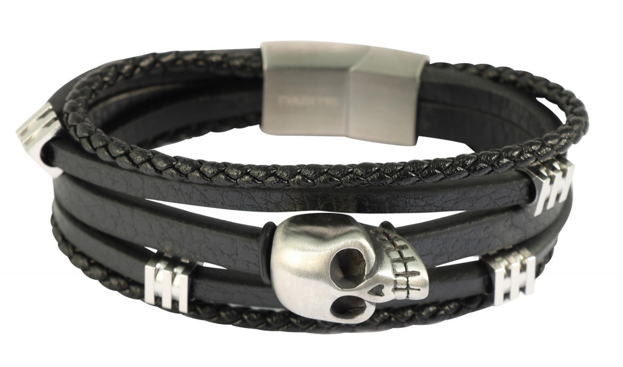 Levi – um acessório diferenciado que combina perfeitamente estilo e caráter. A pulseira “Levi” impressiona não só pelos seus materiais robustos e acabamento cuidadoso, mas também pelo seu design marcante. As cinco tiras de Pele Sintética em diferentes texturas garantem um look variado que combina perfeitamente com looks casuais de lazer. Um destaque especial da pulseira é a chamativa caveira feita de aço inoxidável (2 x 1,4 cm), que confere ao design um toque marcante e poderoso. Além disso, quatro elementos adicionais de aço inoxidável garantem uma aparência elegante e moderna. Com o fecho magnético, a pulseira não é apenas um destaque visual, mas também prática e fácil de usar. Use a pulseira “Levi” como um sinal do seu estilo individual e faça uma declaração – poderosa, confiante e elegante.