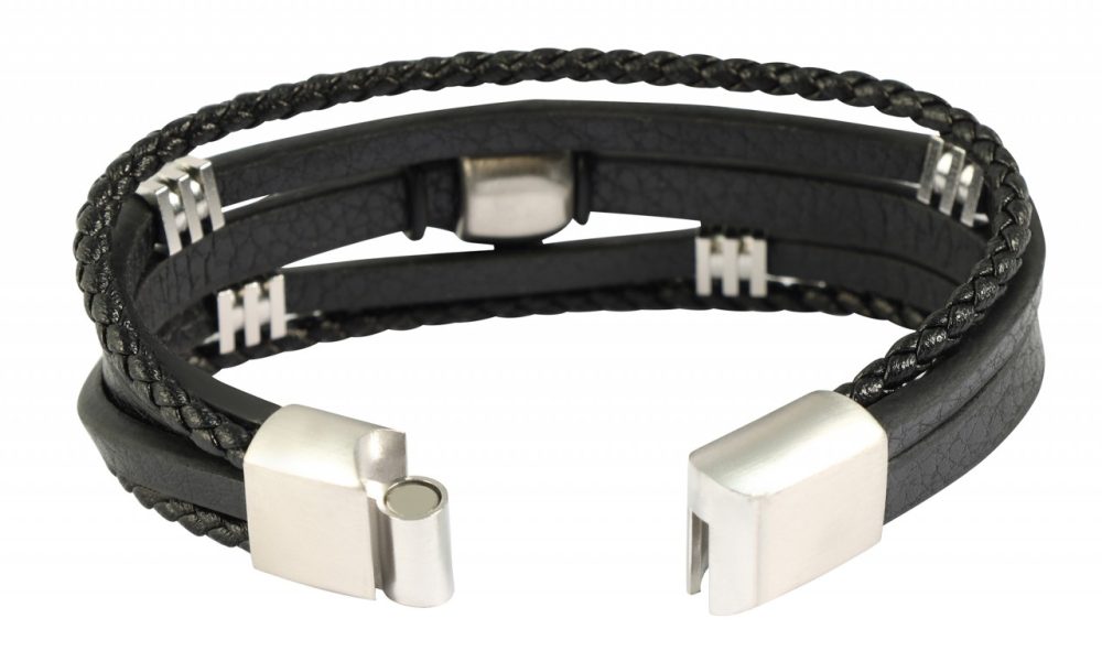 Akzent® Pulseira Levi em Pele Sintética e Elementos em Aço Inoxidável 21cm