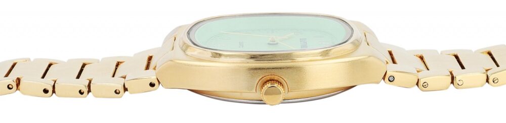 Moderno, elegante e com toques de cores da moda, o “Lina Mae” é o companheiro perfeito para qualquer roupa. A pulseira de aço inoxidável com visual polido e escovado tem uma largura de 22,5 mm medida na haste. O relógio tem um comprimento total de 21,5 cm. Para garantir que “Lina Mae” se encaixe perfeitamente, elementos individuais podem ser facilmente removidos da alça. O fecho dobrável garante uma fixação segura e confortável. A caixa de metal com base de aço inoxidável (40,5 x 35,5 x 9,5 mm) tem um tamanho ideal para qualquer pulso. O mostrador simples, equipado com um prático visor de data, é protegido por um vidro mineral resistente a arranhões. O “Lina Mae” é um clássico atemporal com um toque moderno – os detalhes coloridos o tornam realmente atraente. O movimento de quartzo de alta qualidade tipo Miyota 2115 é um companheiro confiável que não vai te decepcionar.