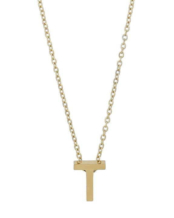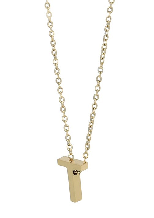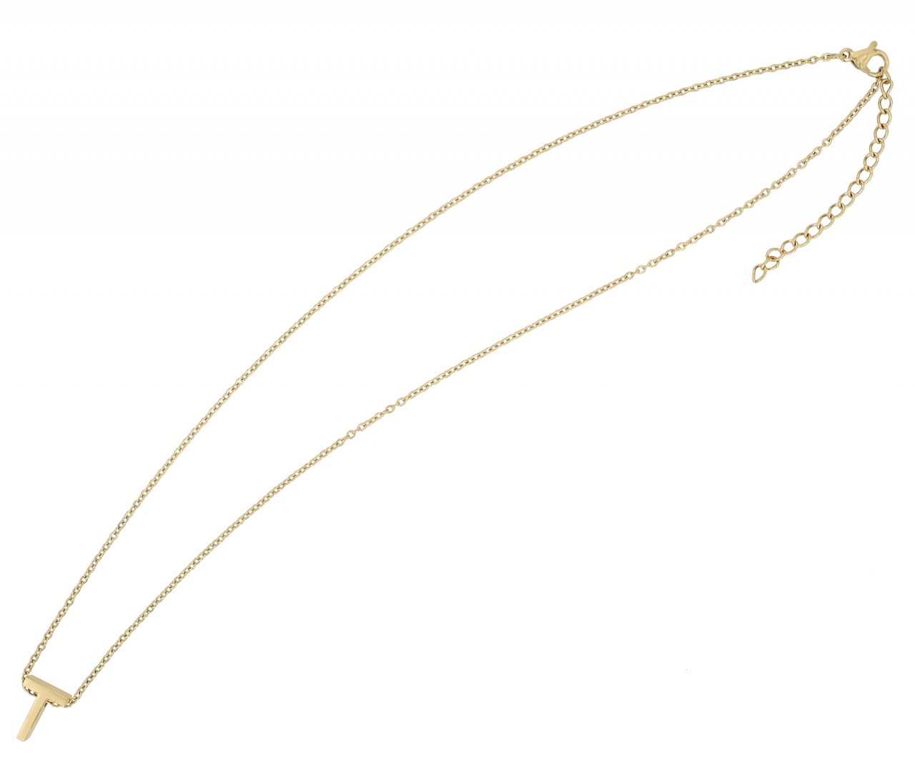 Akzent® Colar “Littri” Dourado Letra T em Aço Inoxidável 45+5 cm