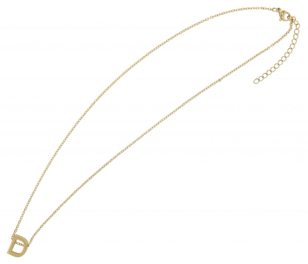 Akzent® Colar “Littri” Dourado Letra D em Aço Inoxidável 45+5 cm