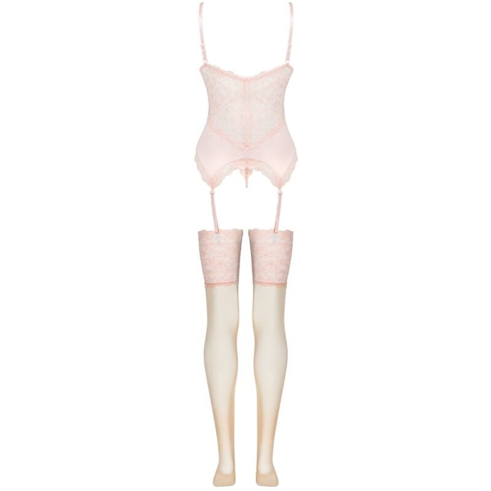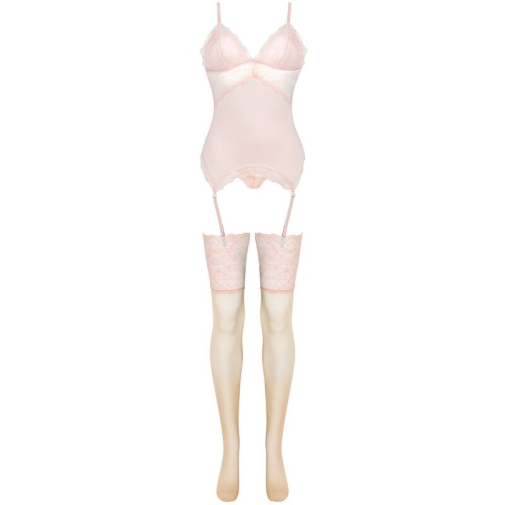 A coleção Persinne Peach Emporio é um luxuoso conjunto de pijamas de três peças contendo um espartilho. de tecido de renda, tangas de renda e meias com cinto. É a combinação perfeita pensada tanto para ocasiões especiais como para o dia a dia, que sem dúvida não deve faltar no guarda-roupa de toda mulher.