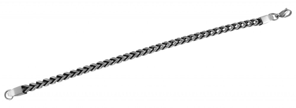 Uma declaração em seu pulso. Esta pulseira de freio sólida feita de aço inoxidável escovado de alta qualidade combina habilmente força e estilo. O acabamento preciso e a estrutura marcante, com largura e altura de 5 mm cada, fazem dele um verdadeiro chamariz. O mosquetão robusto de aço inoxidável garante um ajuste seguro e confortável. Escolha o tamanho perfeito para você entre os comprimentos de 18 cm, 22 cm, 24 cm ou 26 cm. Esta pulseira é mais do que apenas um acessório – é uma expressão de autoconfiança.