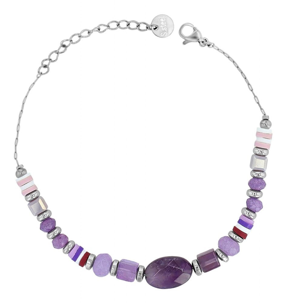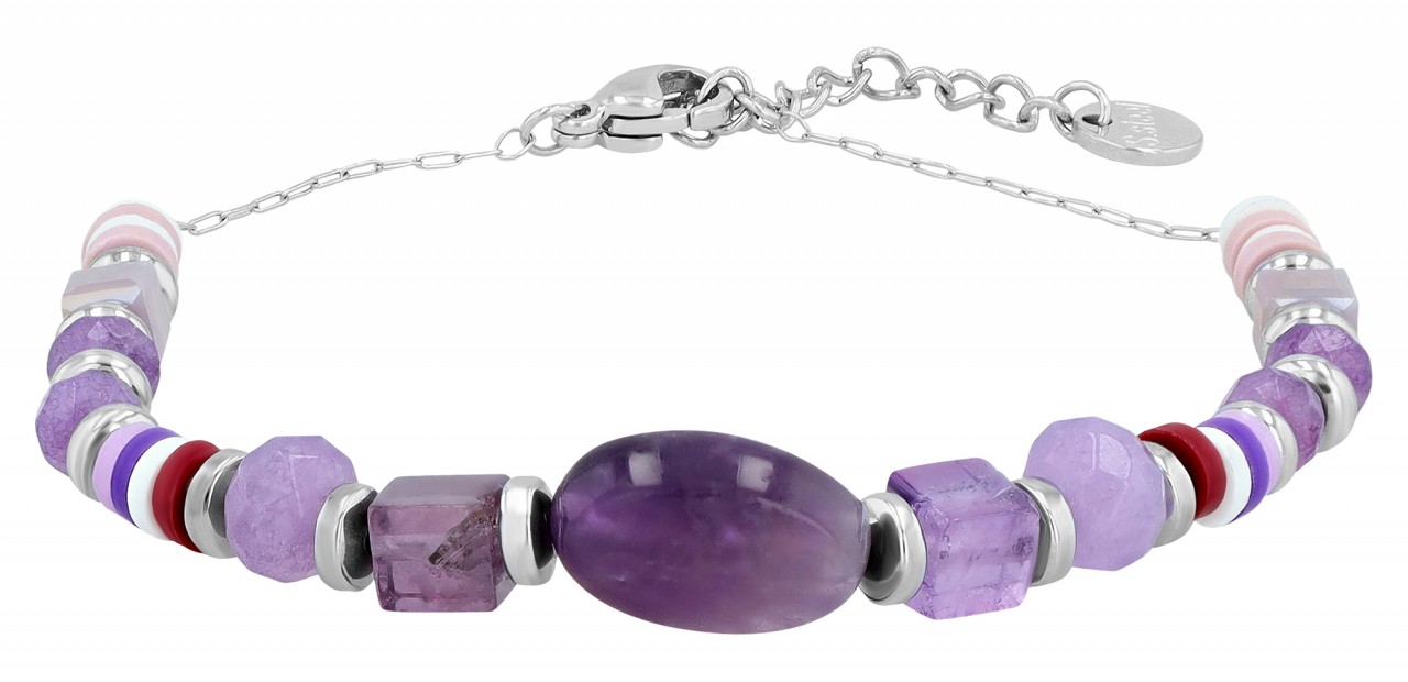 Lowy – uma pulseira fina em aço inoxidável combinada com pedras naturais. Com um comprimento de 16,5 cm e uma extensão adicional de 3 cm, a pulseira é confortável de usar e pode ser personalizada. O fecho de lagosta seguro torna a pulseira fácil de pôr e tirar. O que é que a “Lowy” tem de especial? A delicada pulseira em aço inoxidável (0,5 mm de espessura) é decorada com pedras naturais selecionadas num comprimento de 10 cm. As pedras variam em forma e tamanho e são complementadas por pequenas esferas de aço inoxidável. A pulseira está disponível em diferentes versões – escolha entre diferentes pedras naturais, cada uma das quais com um significado especial. Uma pulseira que combina elegância natural e materiais de alta qualidade – perfeita para qualquer ocasião!