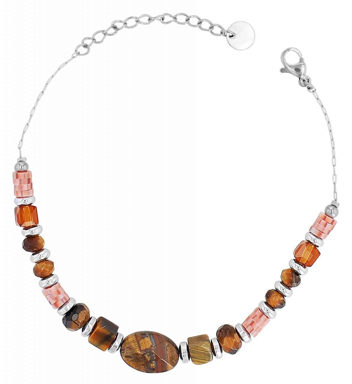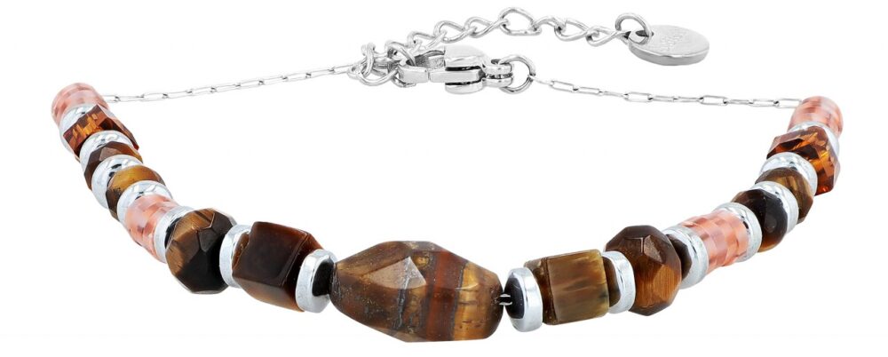 Lowy – uma pulseira fina em aço inoxidável combinada com pedras naturais. Com um comprimento de 16,5 cm e uma extensão adicional de 3 cm, a pulseira é confortável de usar e pode ser personalizada. O fecho de lagosta seguro torna a pulseira fácil de pôr e tirar. O que é que a “Lowy” tem de especial? A delicada pulseira em aço inoxidável (0,5 mm de espessura) é decorada com pedras naturais selecionadas num comprimento de 10 cm. As pedras variam em forma e tamanho e são complementadas por pequenas esferas de aço inoxidável. A pulseira está disponível em diferentes versões – escolha entre diferentes pedras naturais, cada uma das quais com um significado especial. Uma pulseira que combina elegância natural e materiais de alta qualidade – perfeita para qualquer ocasião!