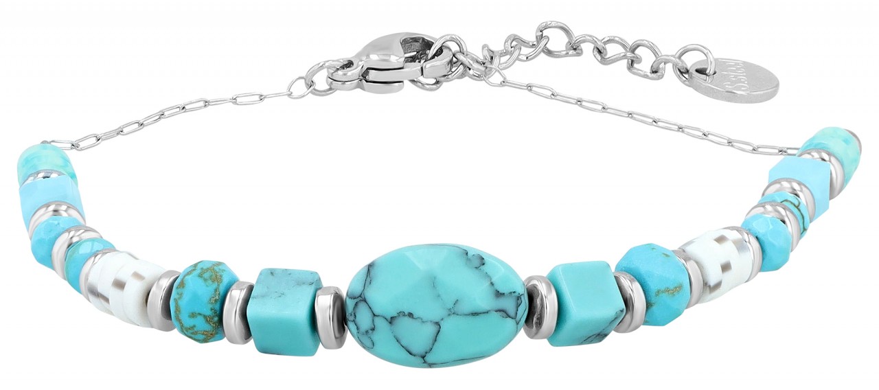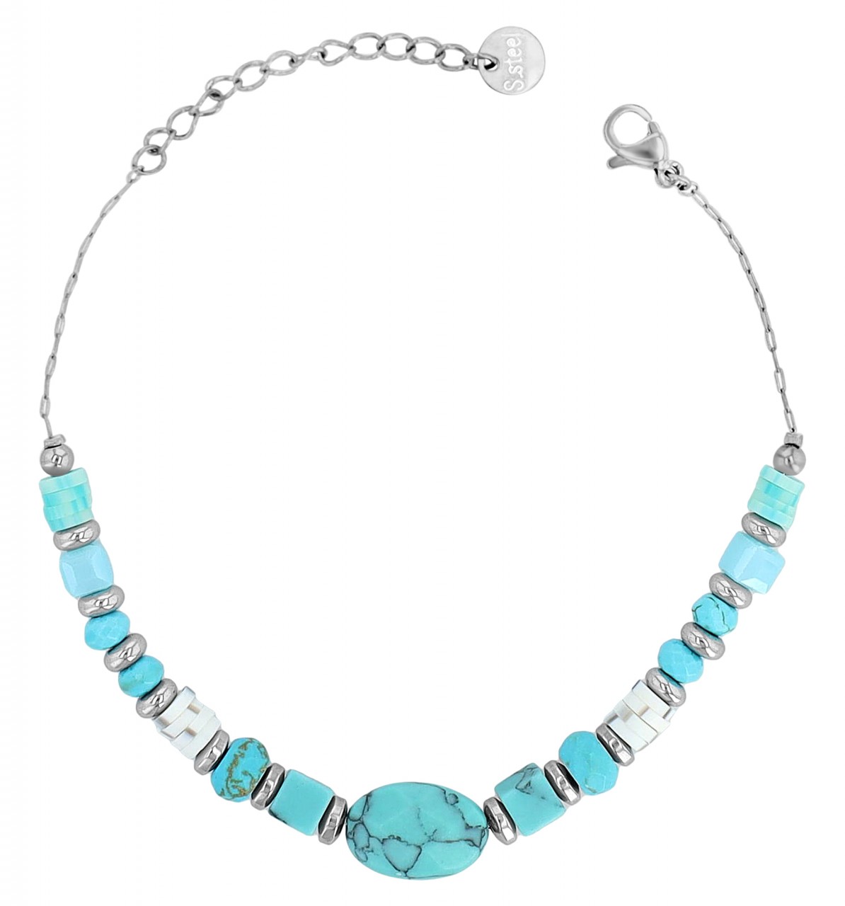 Akzent® Pulseira "Lowy" Prateada em Aço Inoxidável com Pedras Naturais Azuis 0685
