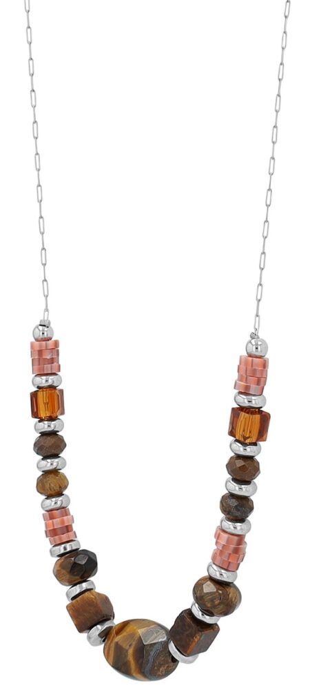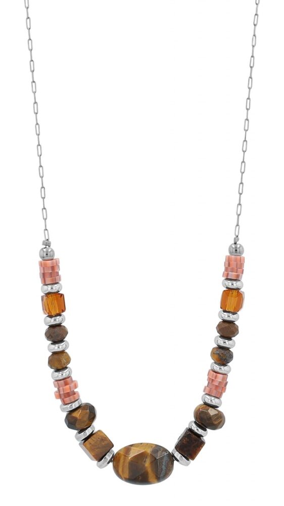 Akzent® Colar em Aço Inoxidável com Pedras Naturais Castanhas 0619