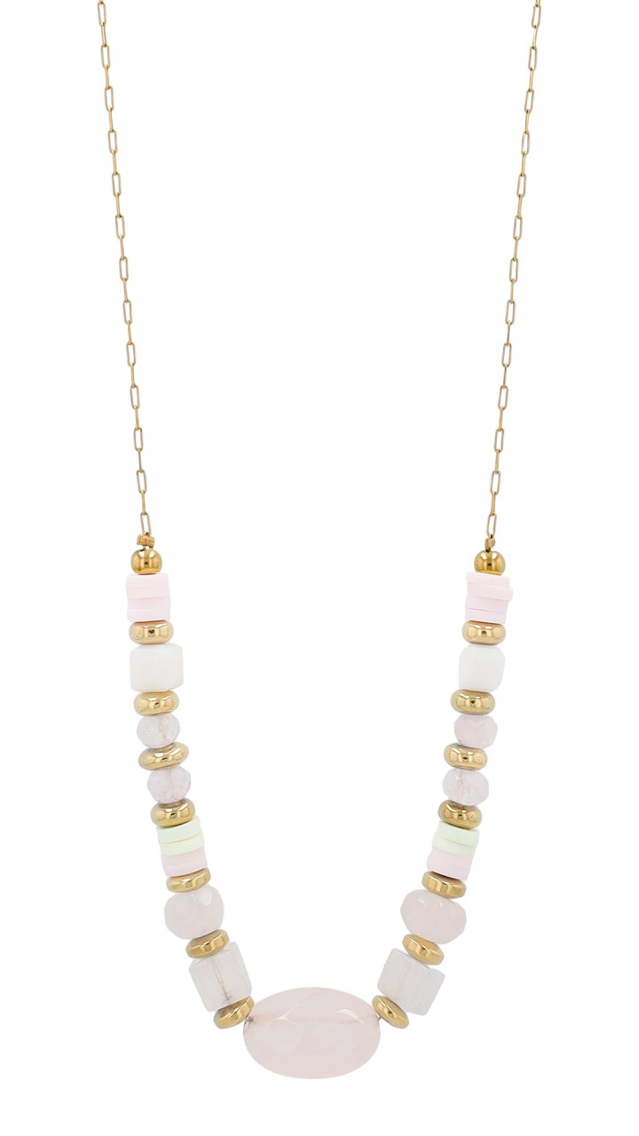 Lowyse – uma fina corrente de aço inoxidável combinada com pedras naturais. Com um comprimento de 42 cm e uma extensão adicional de 3 cm, esta corrente oferece um ajuste confortável e individual. O fecho de lagosta seguro torna a corrente fácil de colocar e tirar, além de proporcionar uma fixação segura. O que há de especial em “Lowyse”? A delicada corrente (0,5 mm) é decorada com pedras naturais selecionadas em um comprimento de 10 cm. As pedras variam em formato e tamanho e são complementadas por pequenas bolas de aço inoxidável. O colar está disponível em diferentes variações – escolha entre diferentes pedras naturais, cada uma com um significado especial. Um colar que combina elegância natural e materiais de alta qualidade – perfeito para qualquer ocasião! Combinado com a pulseira “Lowy” correspondente, você terá o conjunto de joias perfeito que realça sua personalidade com estilo.