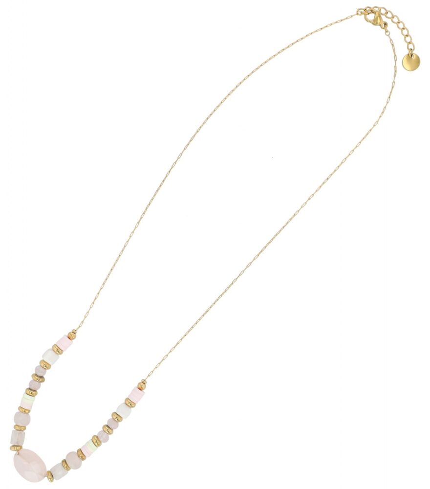 Lowyse - uma fina corrente de aço inoxidável combinada com pedras naturais. Com um comprimento de 42 cm e uma extensão adicional de 3 cm, esta corrente oferece um ajuste confortável e individual. O fecho de lagosta seguro torna a corrente fácil de colocar e tirar, além de proporcionar uma fixação segura. O que há de especial em "Lowyse"? A delicada corrente (0,5 mm) é decorada com pedras naturais selecionadas em um comprimento de 10 cm. As pedras variam em formato e tamanho e são complementadas por pequenas bolas de aço inoxidável. O colar está disponível em diferentes variações - escolha entre diferentes pedras naturais, cada uma com um significado especial. Um colar que combina elegância…