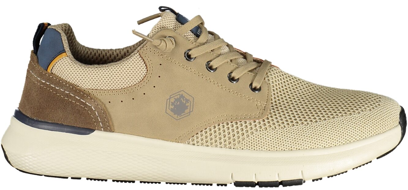 Os detalhes contrastantes em castanho e azul conferem um visual contemporâneo e elegante, enquanto o logótipo da marca completa a peça com identidade.
